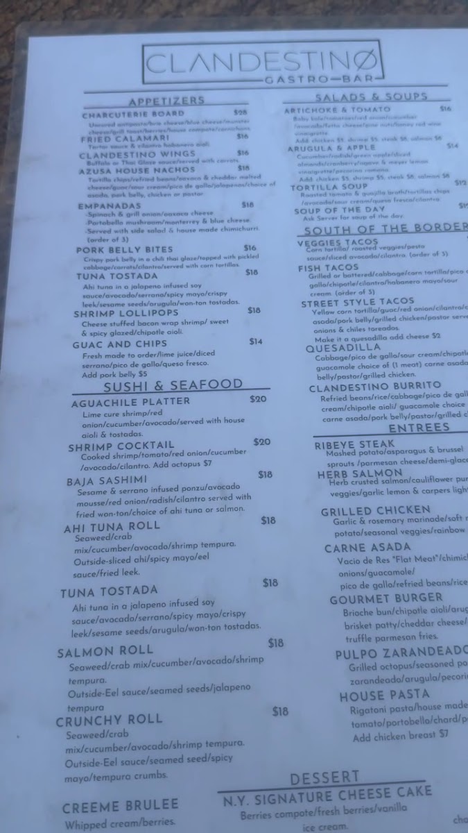 Welcome to Clandestino Gastro-Bar, a culinary gem located at 353 E Foothill Blvd, Azusa, CA. This vibrant eatery captivates diners with a menu that fuses modern flavors with traditional recipes, promising an unforgettable dining experience.